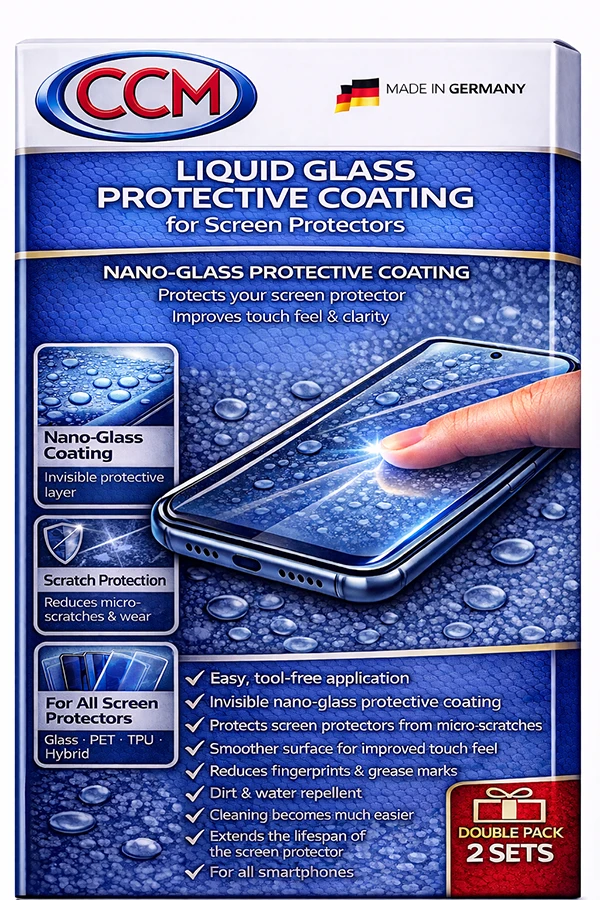 CCM display coating provides a solution. It forms an invisible nano-glass protective layer on the screen protector, reduces fingerprints and dirt, improves the touch response, and makes cleaning significantly easier. This makes the screen protector feel smooth and high-quality again—ensuring a pleasant, clean user experience in daily use.